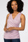 A sleeveless nursing top. Features crossover neckline and side ruching.