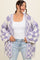 Cozy up in style with our Lavender Mixed Check Pattern Chunky Cardigan. Featuring a trendy oversized fit and a bold mixed check design in soft lavender and cream, this cardigan is perfect for layering on chilly days. Crafted from a plush, chunky knit fabric, it adds warmth without sacrificing on comfort. The relaxed silhouette and balloon sleeves bring a modern, fashionable edge to your everyday look. Pair it with your favorite jeans and a simple top for a effortlessly chic outfit. Embrace comfort and style with this versatile, eye-catching knitwear essential!