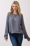 Light Blue Rib Knit Casual Henley Top