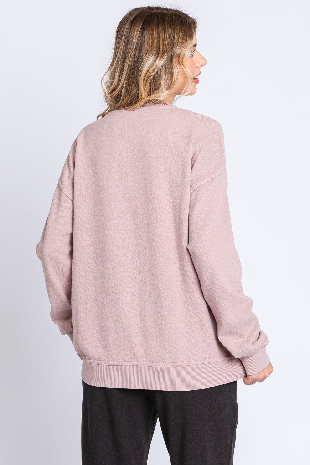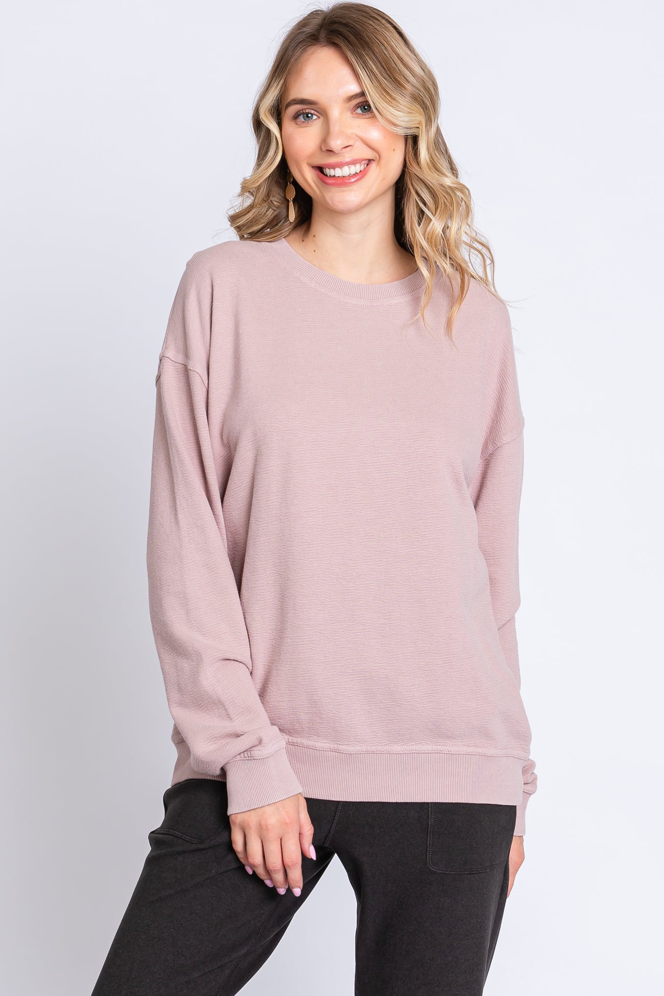A knit top featuring a crew neckline, long sleeves and a ribbed trim.