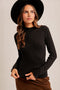Mocha Lettuce Edge Mock Neck Long Sleeve Rib Top