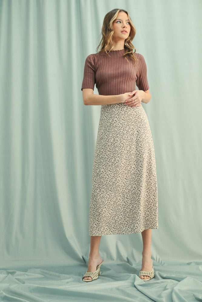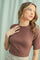 Mocha Ribbed Mock Neck Knit Short Sleeve Top