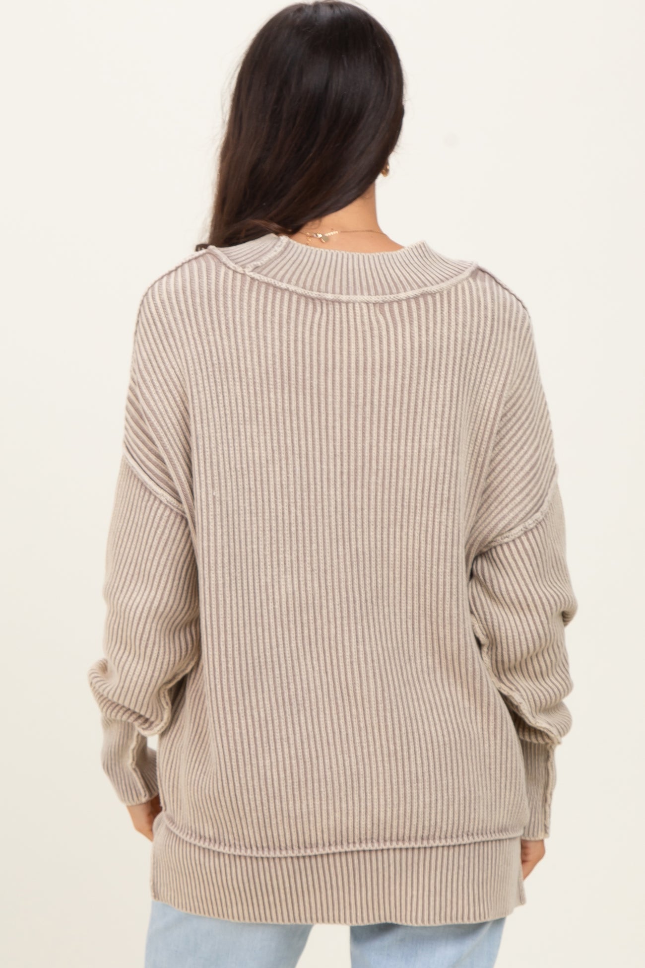 Mocha Washed Side Slit Oversized Sweater