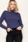 Navy Ribbed Mock Neck Ruffle Hem Long Sleeve Top