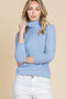 A soft ribbed sweater featuring a rounded neckline, long balloon sleeves and contrast trim.