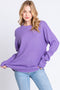 A knit pullover sweater featuring long sleeves and a rounded neckline.