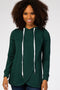 An ultra soft knit nursing top featuring fleece lining, an adjustable drawstring hood, long sleeves and a layered front for easy access.