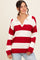 Stay stylish and cozy with our Red Wide Stripe Polo Sweater, featuring bold red and white horizontal stripes for a fresh, vibrant look. Crafted from soft, breathable knit fabric, this sweater offers all-day comfort with a relaxed fit. The classic polo collar and subtle V-neckline add a touch of timeless charm, perfect for casual outings or layering on cooler days. Pair it effortlessly with jeans or skirts for an easygoing yet chic ensemble. Ideal for adding a pop of color and comfort to your wardrobe, this versatile sweater is a must-have for your seasonal collection. Available in multiple sizes.