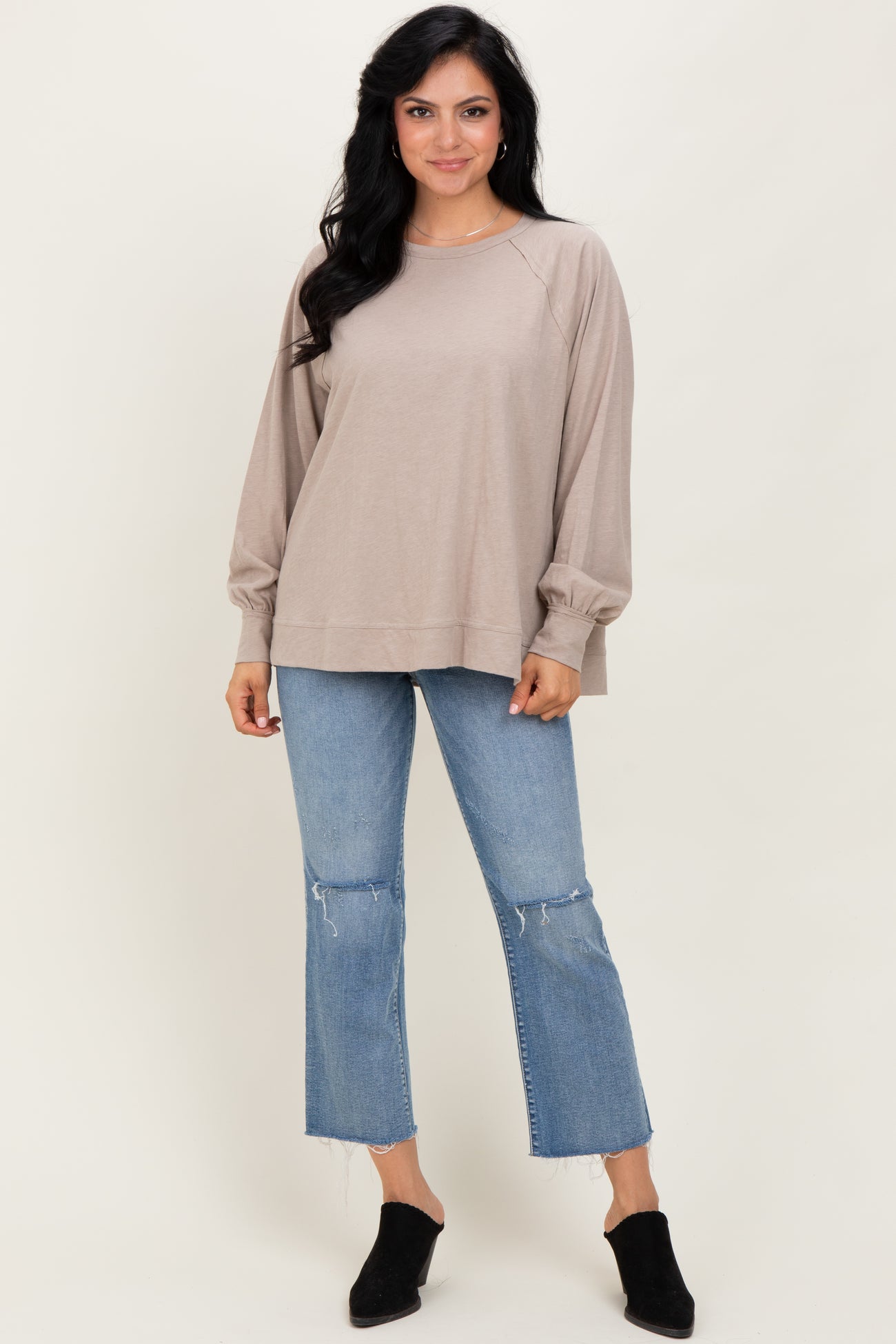 Elevate your casual wardrobe with this Taupe Oversized Cotton Slub Long Sleeve Top. Crafted from soft, breathable cotton slub fabric, it offers a relaxed fit perfect for all-day comfort. Featuring a subtle textured finish, a classic crew neckline, and raglan sleeves with gentle puffed cuffs, this top blends effortless style with cozy ease. The versatile taupe color pairs beautifully with your favorite jeans or leggings for a laid-back yet chic look. Ideal for layering or wearing solo on milder days, this oversized top is your new go-to for casual cool. Available in multiple sizes to suit your shape perfectly.
