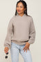Taupe Ribbed Mock Neck Lettuce Trim Long Sleeve Top