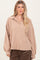 Taupe Solid Ribbed Long Sleeve Button Down Collared Top
