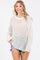 An open knit sweater with ribbed trim along the round neckline, sleeve cuffs, and bottom hem.