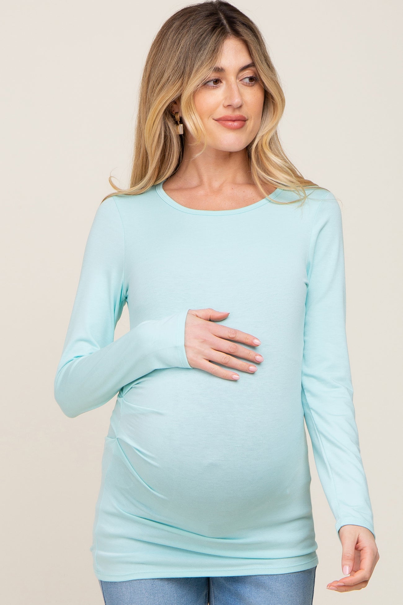 Aqua Blue Ruched Side Long Sleeve Maternity Top