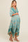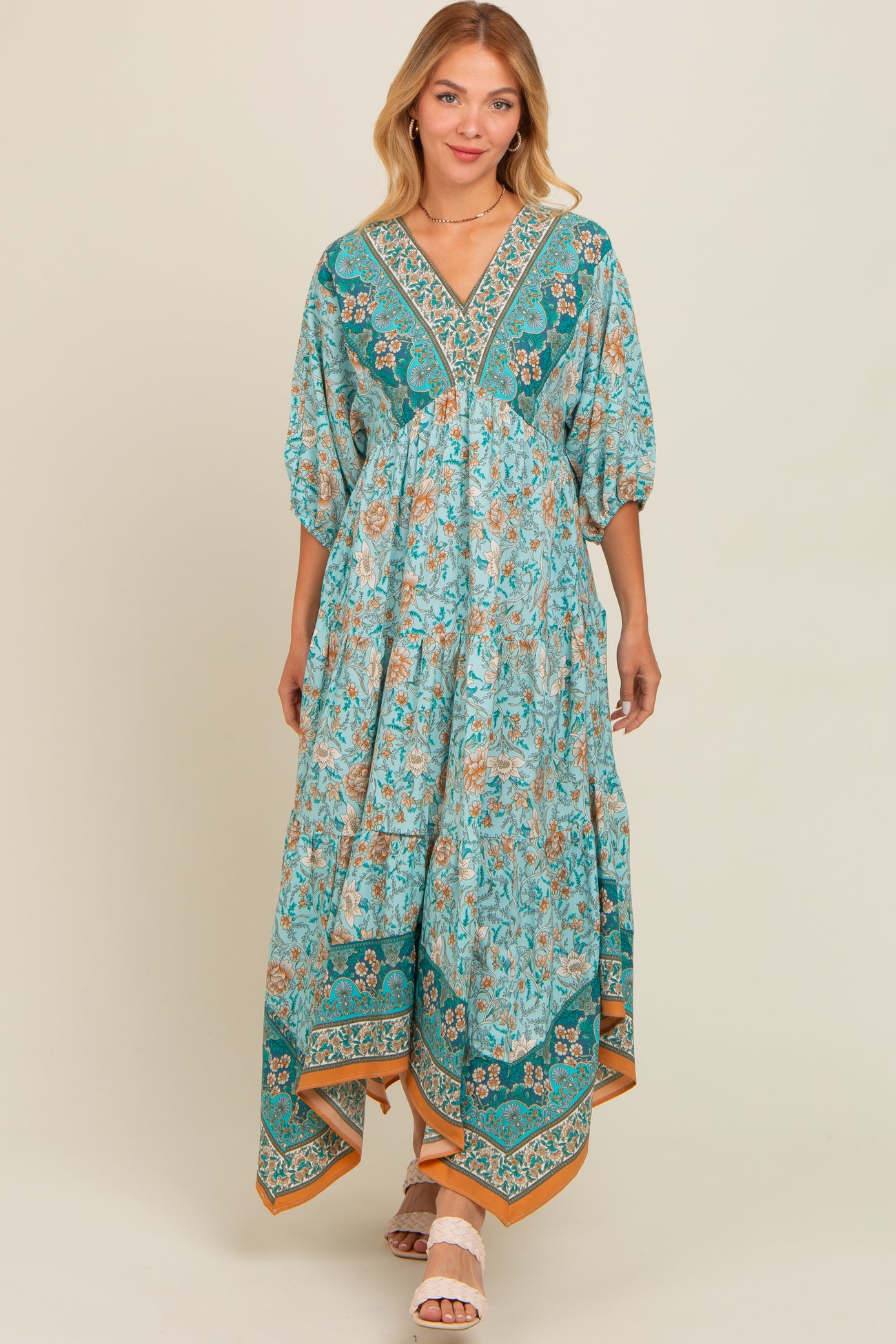 Aqua Floral Border Print V-Neck Tiered Maternity Midi Dress