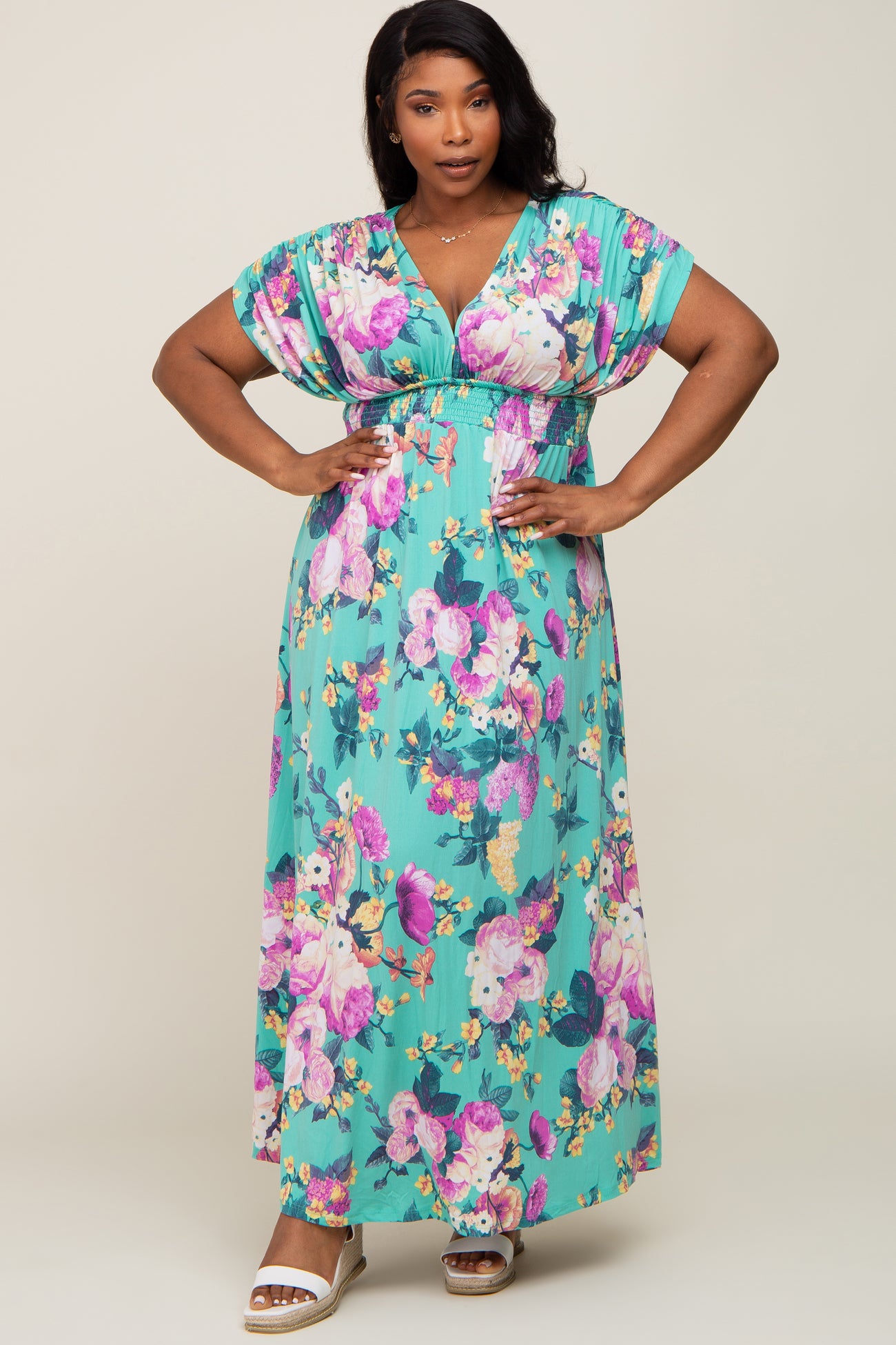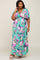 Aqua Floral Deep V-Neck Plus Maxi Dress