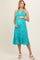Aqua Floral Sleeveless Halter Neck Open Back Maternity Dress