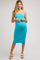 A strapless, wide rib knit maternity midi dress with a squared neckline.