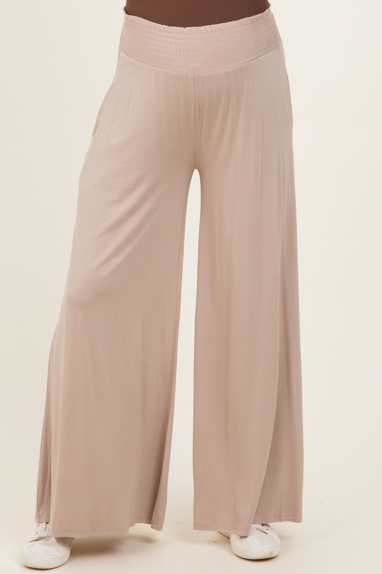 Ash Mocha Smocked Waist Wide Leg Maternity Pants