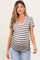 Beige Black Stripe Short Sleeve Round Neck Maternity Top