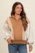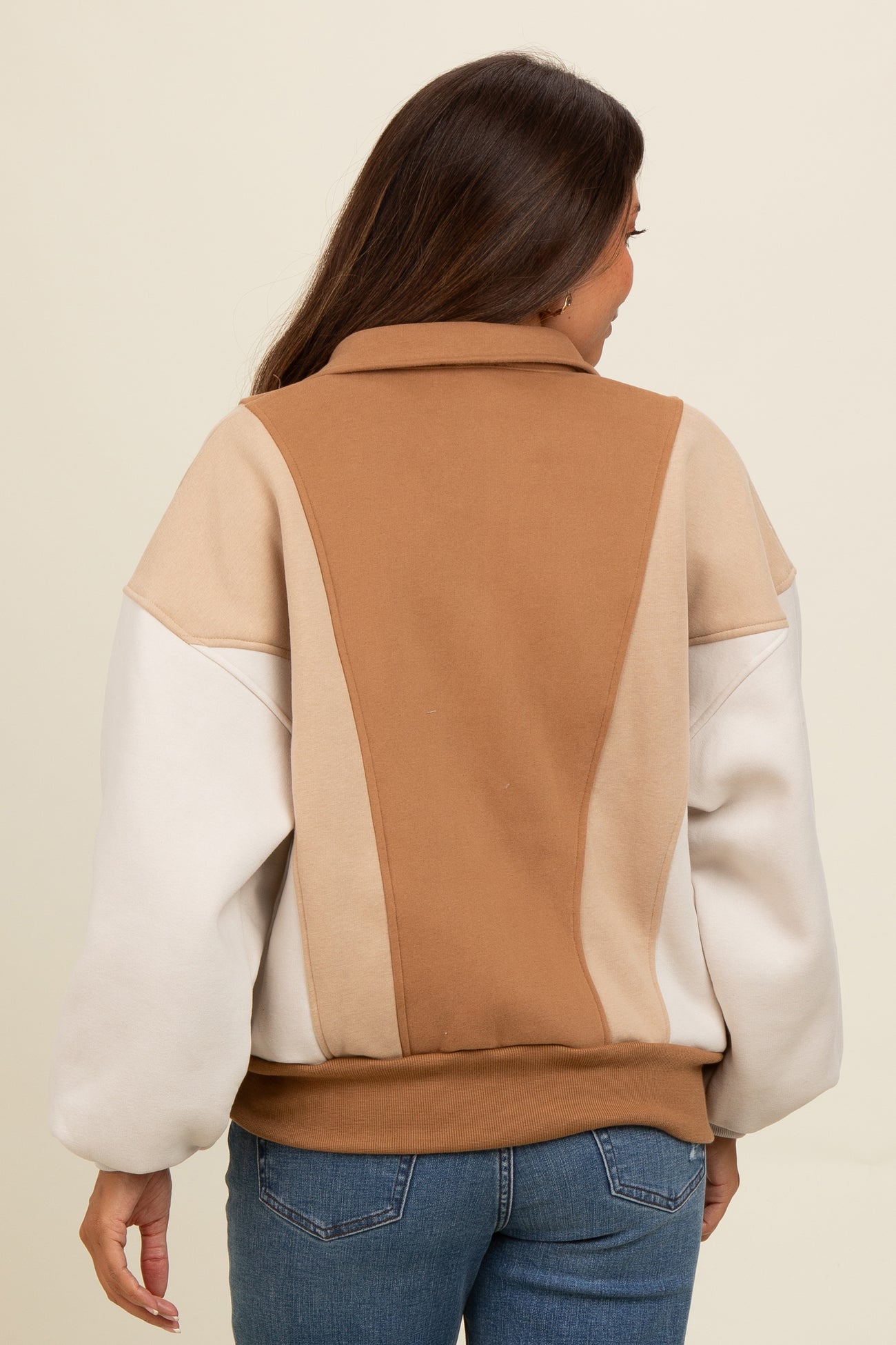 Beige Colorblock Snap Button Maternity Polo Sweatshirt