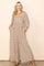 A floral jumpsuit with a squared neckline, a smocked top, long cinched sleeves, side pockets, and wide pant legs.