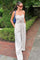 A set with a crop top and wide leg pants. The smocked crop top features an adjustable front tie, and the pants have an elastic waistband and side pockets.