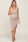 A solid knit maternity fitted sleeveless midi dress with a square neckline and a side slit.