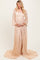 Beige Lace Long Sleeve Off Shoulder Slit Draped Maternity Photoshoot Dress