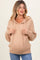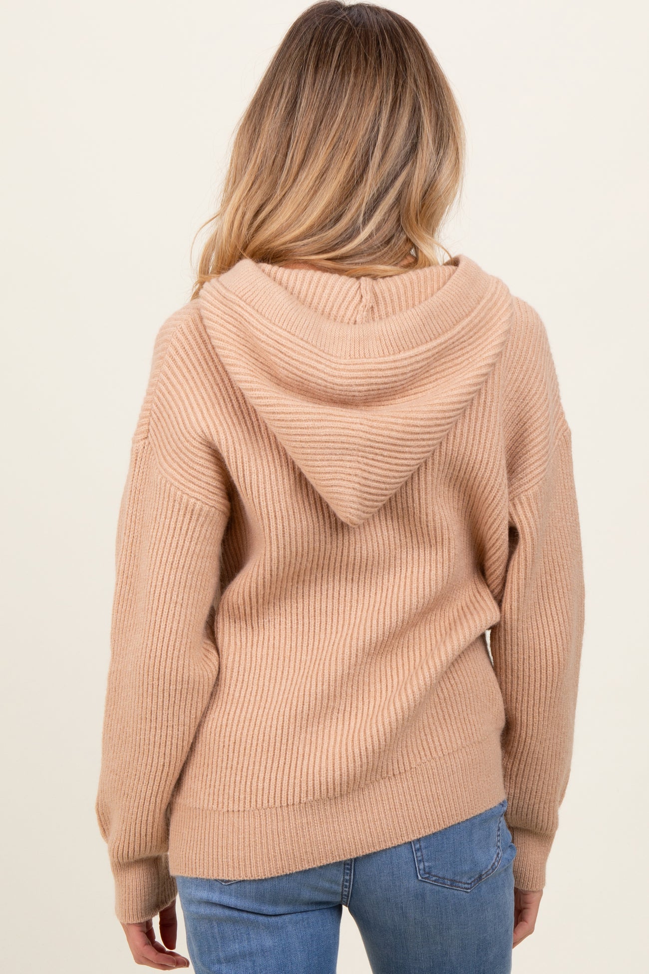 Beige Ribbed Knit Button Front Hooded Maternity Sweater
