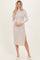 Beige Ribbed Knit Turtleneck Side Slit Dress