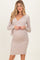 Beige Ribbed Long Sleeve V-Neck Wrap Maternity Midi Dress