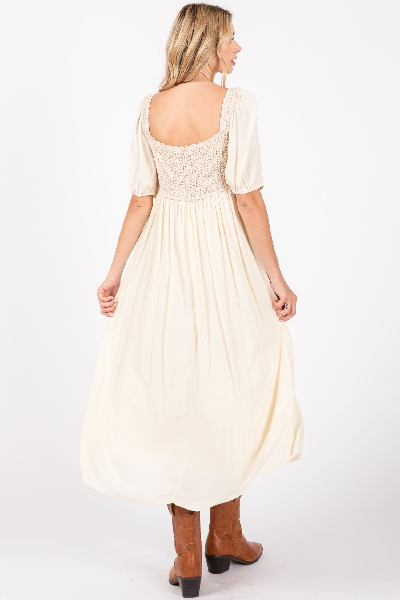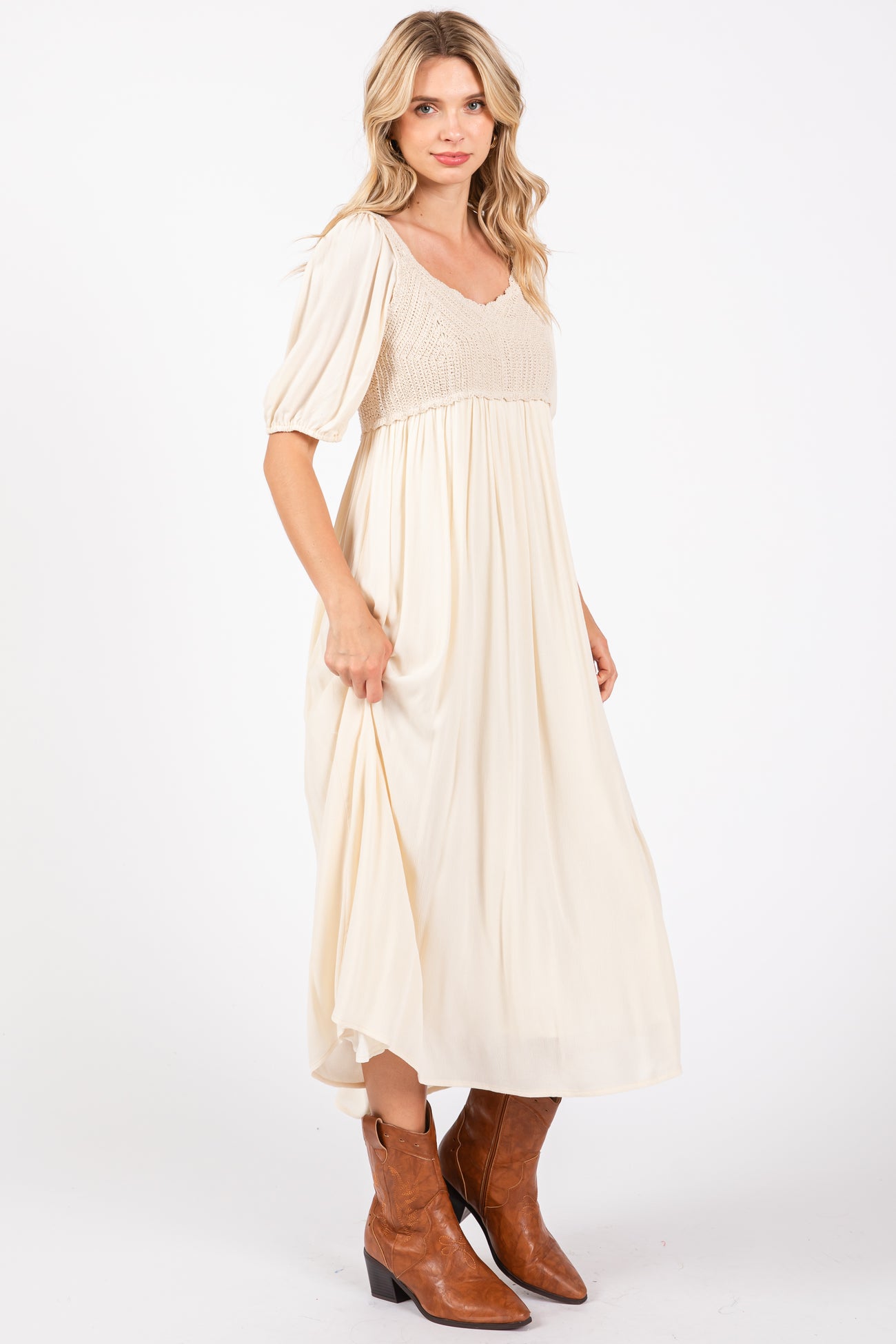 Beige Short Sleeve Knit Top Dress