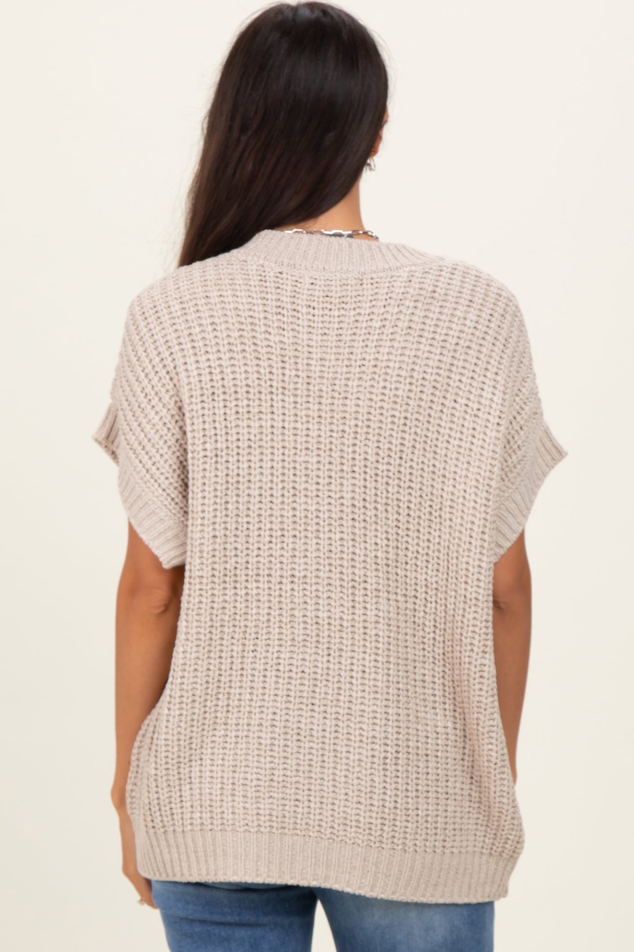Beige Short Sleeve Round Neck Sweater