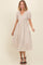 Beige Smocked V-Neck Puff Sleeve Midi Dress