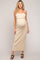 Beige Strapless Fold Over Lettuce Trim Maternity Maxi Dress