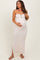 Beige Striped Halter Neck Fitted Maternity Maxi Dress