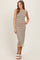 Beige Striped Knit Sleeveless Ruffle Hem Midi Dress
