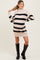 Beige Striped Knit Turtleneck Maternity Sweater Dress