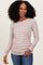Beige Striped Ruched Side Long Sleeve Top