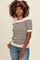 Beige Striped Short Sleeve Knit Top
