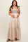 Beige Sweetheart Neck Smocked Embroidered Ribbon Shoulder Tie Maternity Midi Dress