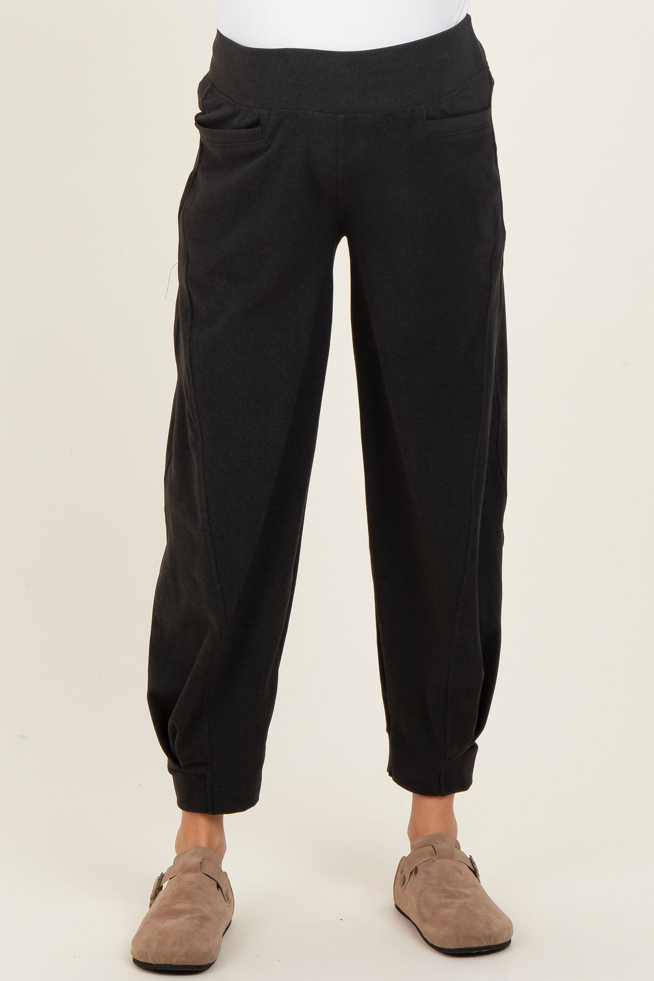 Black Brushed Knit Barrel Leg Maternity Joggers