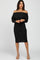 A heathered, brushed knit midi dress with an off shoulder neckline, long dolman sleeves, and a self tie at the waist.