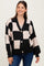 Stay cozy and stylish with our Black Checkered Rib Bubble Sleeve Button Maternity Cardigan. Designed with a trendy oversized check pattern in black and beige, this cardigan features soft ribbed knit fabric offering gentle stretch and comfort for your growing bump. The bubble sleeves add a fashionable touch while providing a relaxed fit that's perfect for layering. Front button closure allows easy wear and nursing access. Pair it with your favorite maternity jeans or leggings for a chic, everyday look that keeps you comfortable all season long. Ideal for work, casual outings, or cozy days at home.