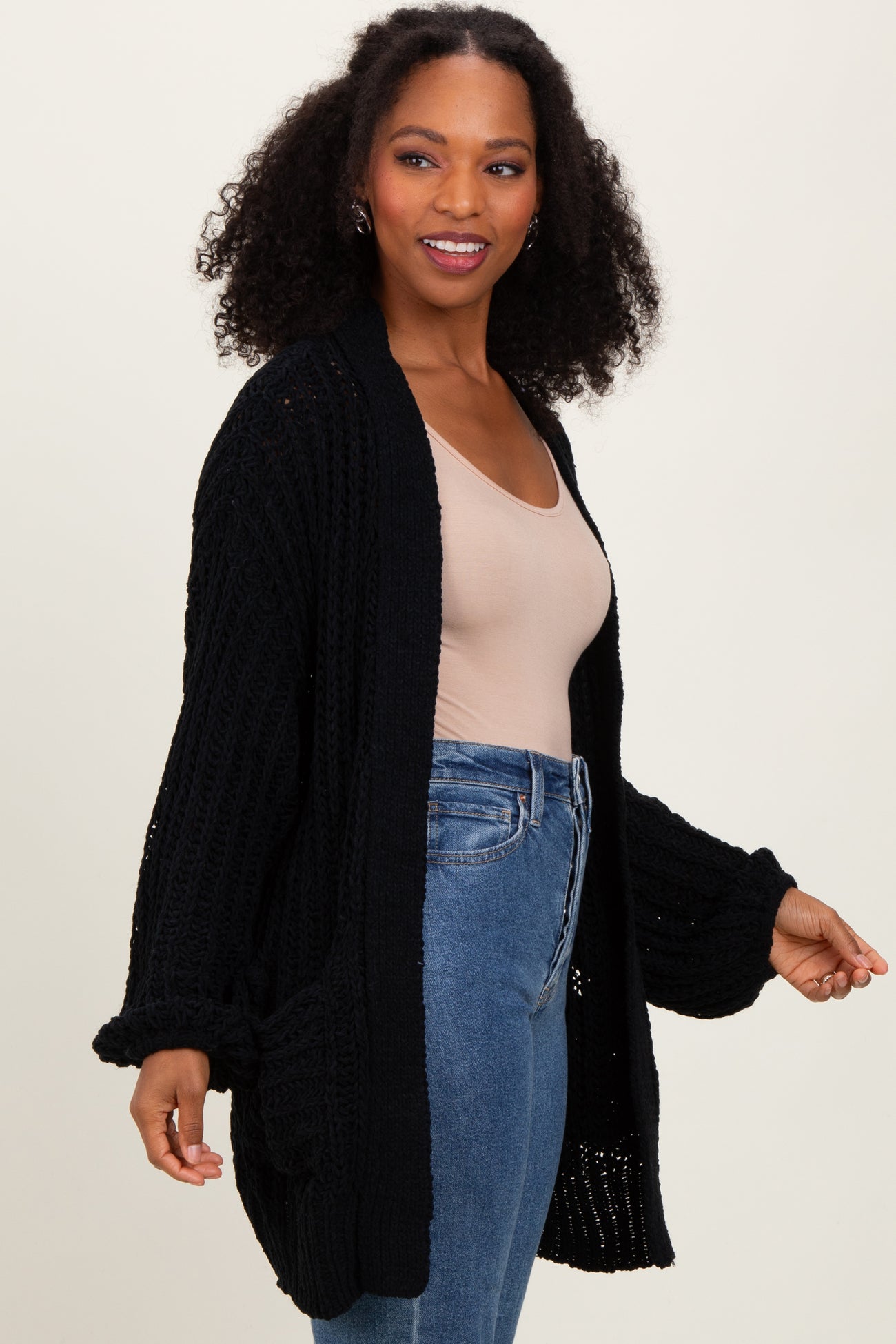 Stay cozy and stylish with our Black Chunky Knit Oversized Pocket Cardigan. Crafted from soft, thick yarn, this cardigan features a relaxed fit and voluminous sleeves for the perfect laid-back look. With its oversized design and roomy front pockets, it offers both comfort and functionality. Ideal for layering over tees or tank tops, it effortlessly elevates casual outfits while keeping you warm. Whether you're lounging at home or heading out, this versatile piece is a must-have essential for your fall and winter wardrobe. Embrace cozy chic with this timeless staple!