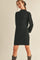 A solid thick knit sweater dress with a mock neckline, contrast knit on chest and bubble sleeves.