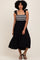 Black Crochet Bodice Shoulder Tie Tiered Midi Dress