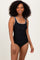 Black Embroidered Trim Back Cutout One Piece Swimsuit