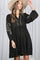Black Embroidered V-Neck Long Sleeve Dress
