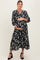 Black Floral Button Front V-Neck Maternity Midi Dress